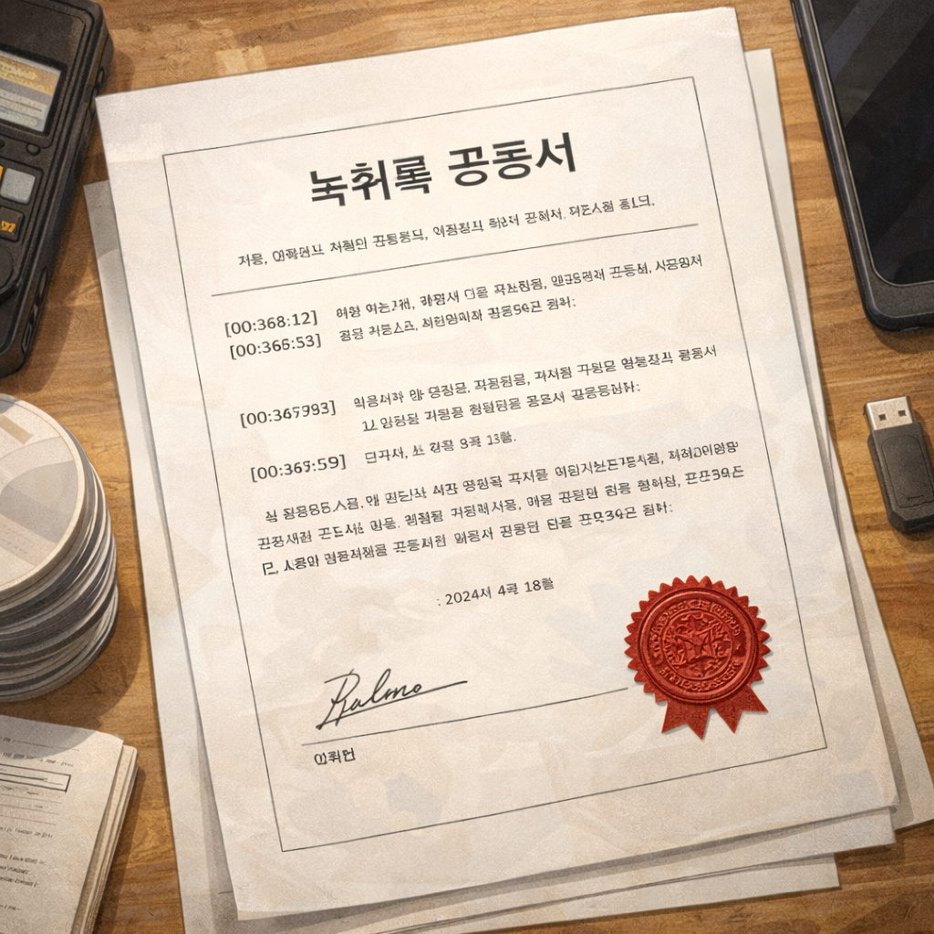 녹음만 있으면 된다고 생각하는 경우가 많습니다. 하지만 실제로는 문서화된 녹취록이 없으면 변호인의 법적 대응도 제한됩니다.